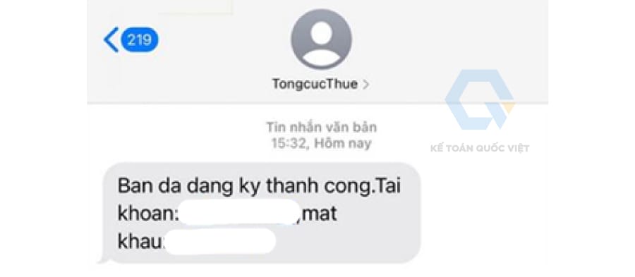 Bước 3: Sau khi đăng ký thành công, hệ thống sẽ gửi thông tin tài khoản bao gồm mã số thuế cá nhân và mật khẩu đăng nhập ứng dụng eTax Mobile về tin nhắn điện thoại.