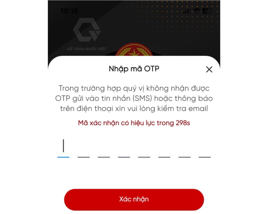 Bước 2: Hệ thống sẽ gửi mã OTP về số điện thoại ➨ bạn nhập mã OTP ➨ chọn “Xác nhận” để hoàn tất việc đăng nhập app eTax Mobile.