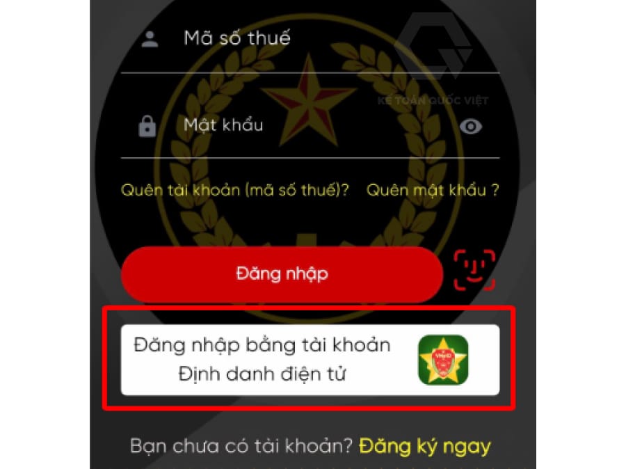 Bước 1: Mở app eTax Mobile ➨ chọn “Đăng nhập bằng tài khoản định danh điện tử”;