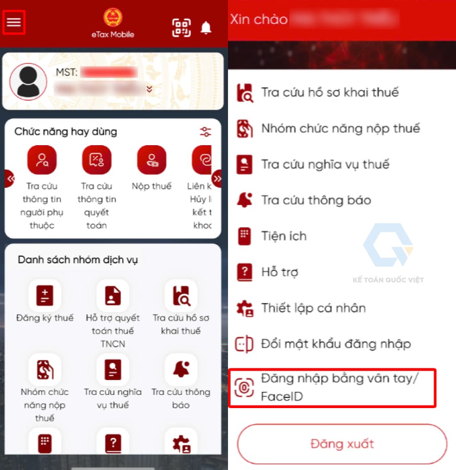 3. Cách đăng nhập eTax Mobile bằng sinh trắc học (vân tay, khuôn mặt)