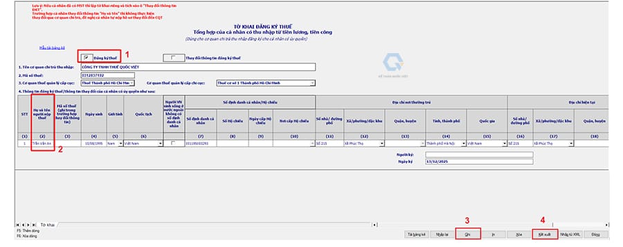 Doanh nghiệp thực hiện các bước đăng ký MSTCN cho người lao động trên HTKK như sau: