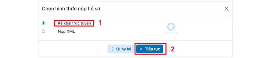 - Trường hợp kê khai trực tuyến doanh nghiệp chọn “Kê khai trực tuyến” ➨ chọn “Tiếp tục”;