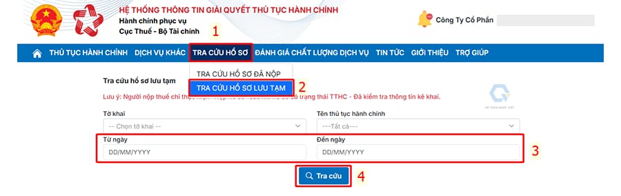 - Chọn khoảng thời gian phù hợp tương ứng với ngày nộp hồ sơ lưu tạm.