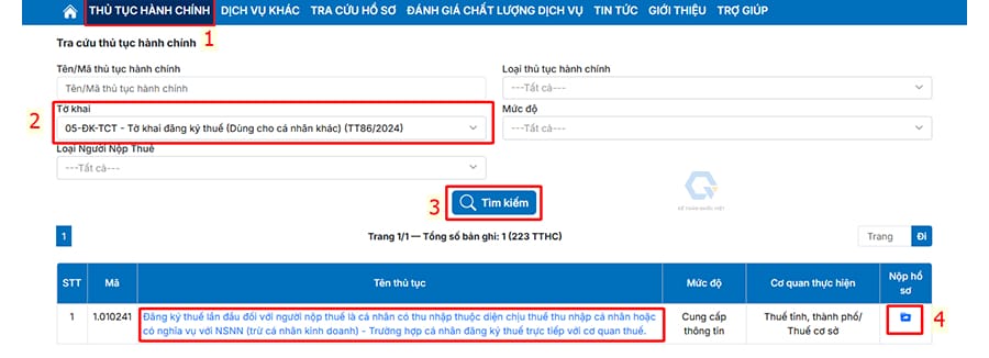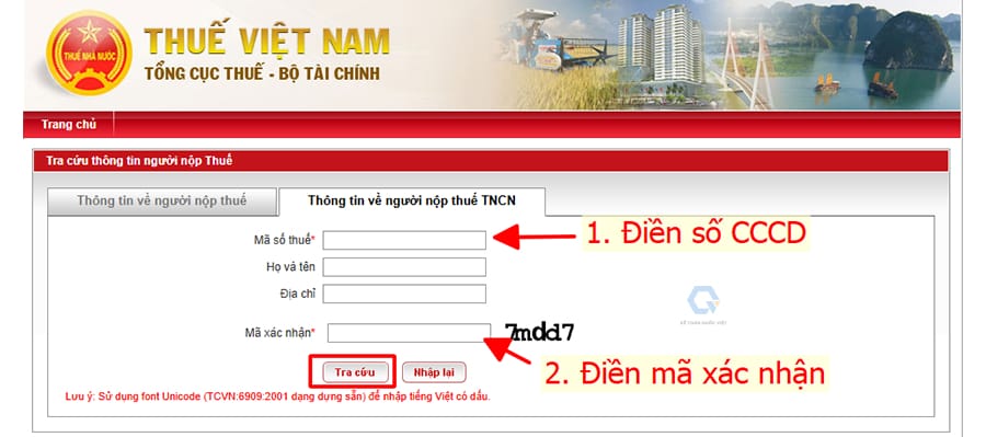 - Cách 2: Tra cứu MSTCN trên trang Thuế Việt Nam