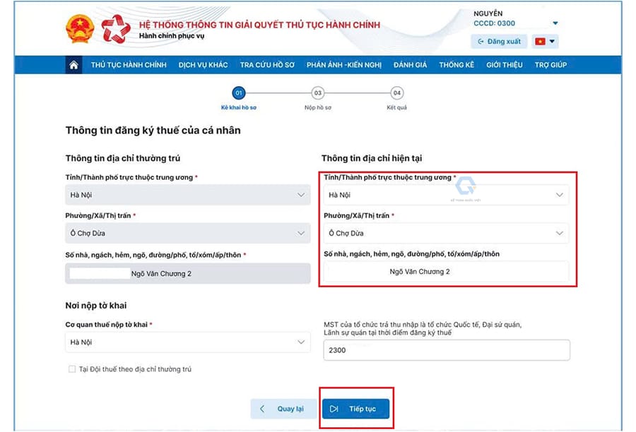 Bước 4: Cá nhân cập nhật thông tin địa chỉ hiện tại của bản thân