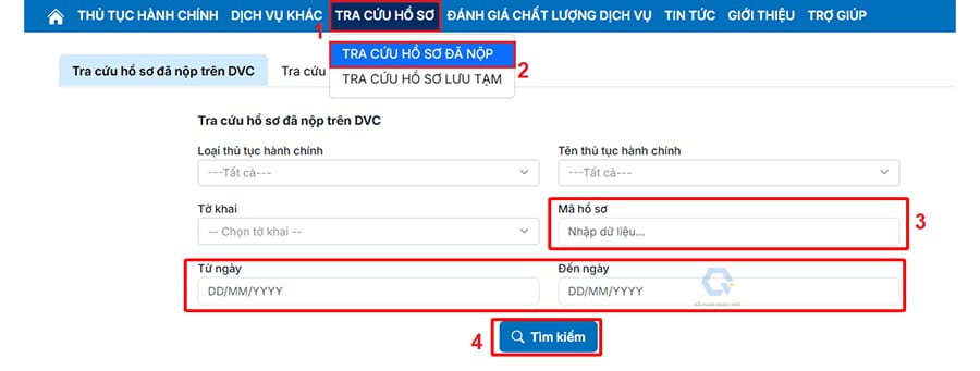 Bước 6: Thực hiện tra cứu hồ sơ lưu tạm