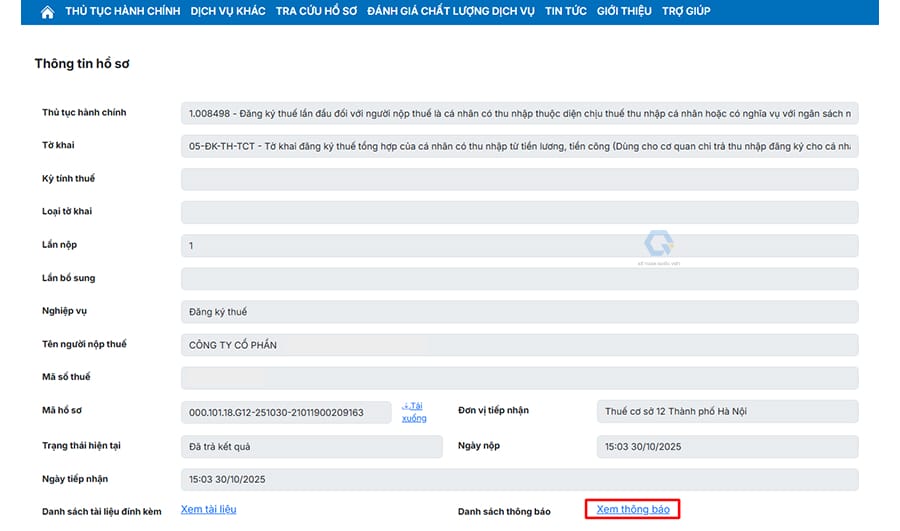Bước 3: Xem thông tin mã số thuế cá nhân