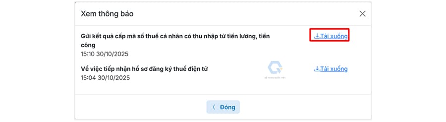 - Màn hình hiển thị thông báo cơ quan thuế trả về, bạn chọn mục “Tải xuống” để xem kết quả mã số thuế cá nhân trả về.