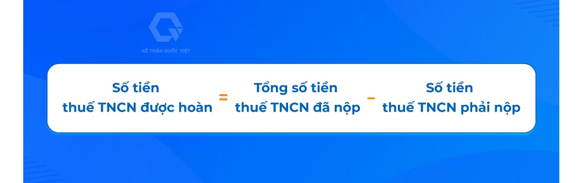 Số tiền thuế TNCN được hoàn = Tổng số tiền thuế TNCN đã nộp - Số tiền thuế TNCN phải nộp.