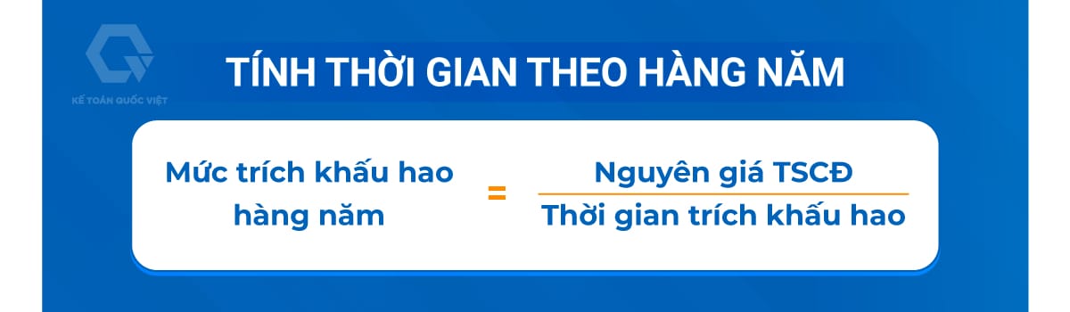 Công thức tính khấu hao TSCĐ theo thời gian hàng năm như sau:
