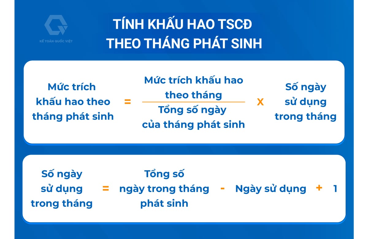Trường hợp doanh nghiệp mua TSCĐ và sử dụng ngay trong tháng, thì công thức tính khấu hao TSCĐ theo tháng phát sinh như sau: