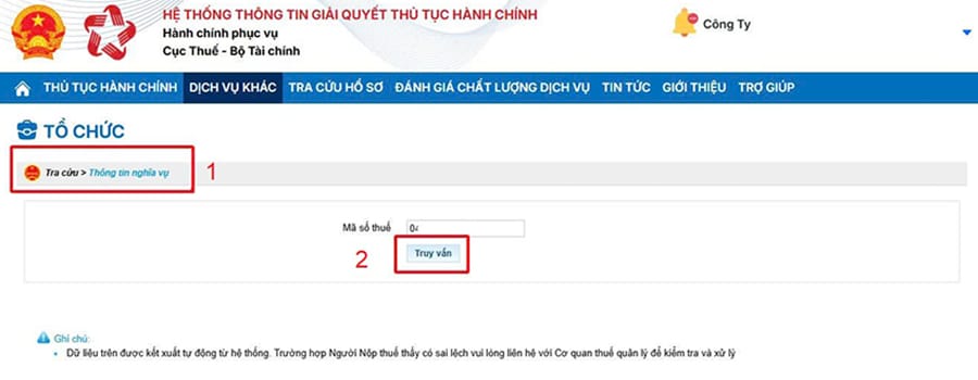 ➧ Bước 2: Tra cứu nghĩa vụ thuế doanh nghiệp