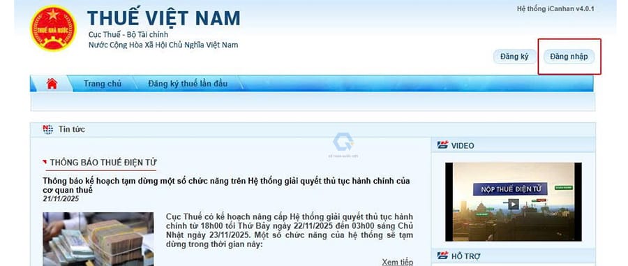 ➧ Bước 1: Đăng nhập vào tài khoản Thuế điện tử
