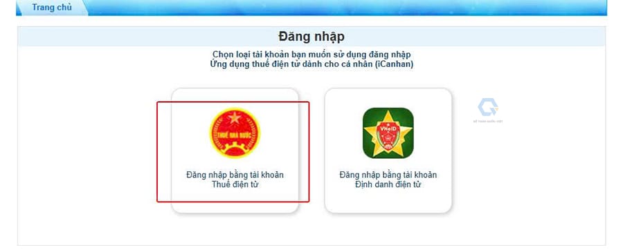 - Tiếp theo, chọn “ Đăng nhập bằng tài khoản Thuế điện tử”;