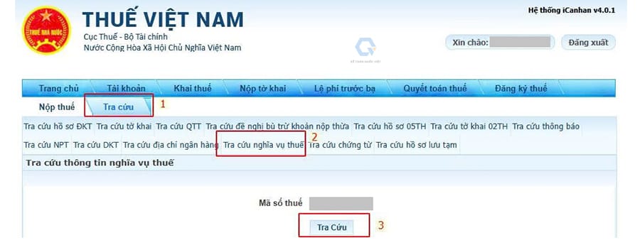 ➧ Bước 2: Tra cứu nợ thuế hộ kinh doanh cá thể