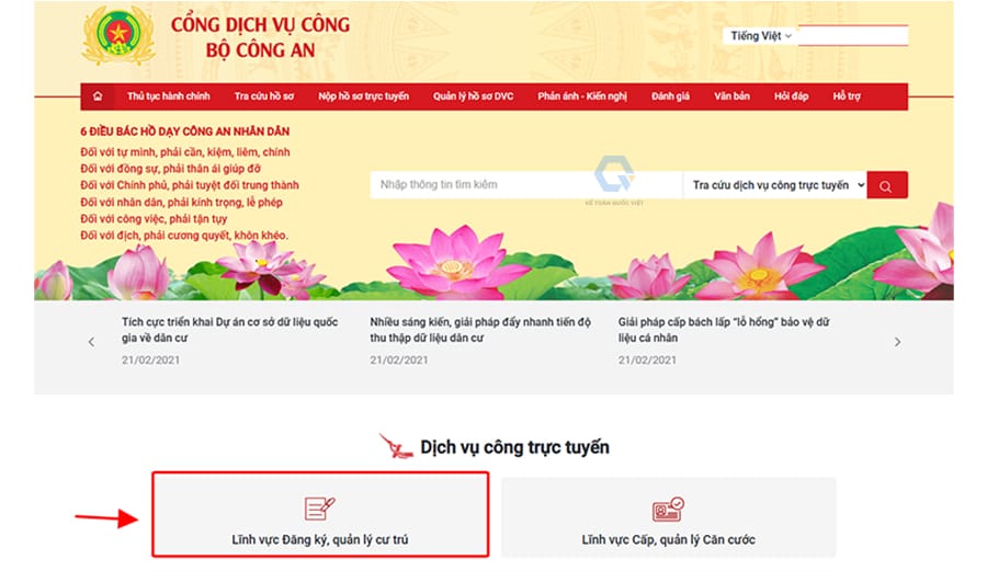Bước 1: Đăng nhập vào Cổng dịch vụ công quản lý cư trú của Bộ Công an