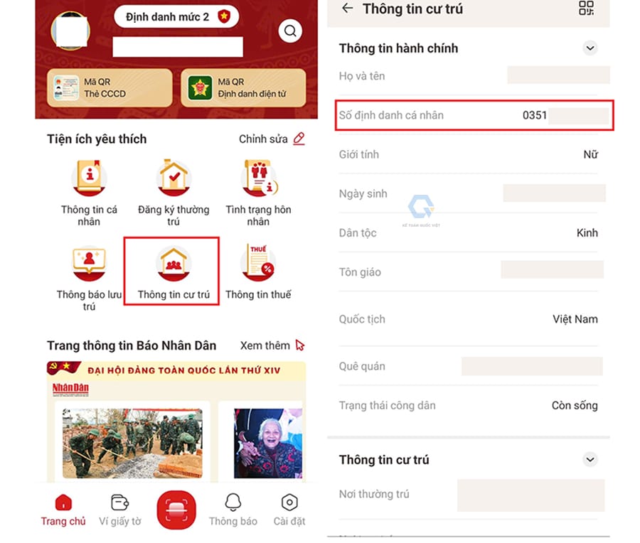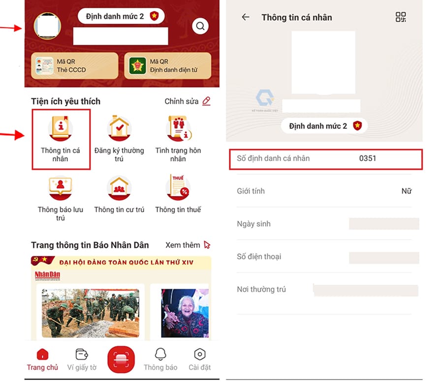 Bước 4: Xem số định danh cá nhân tại ô được khoanh đỏ như hình bên dưới