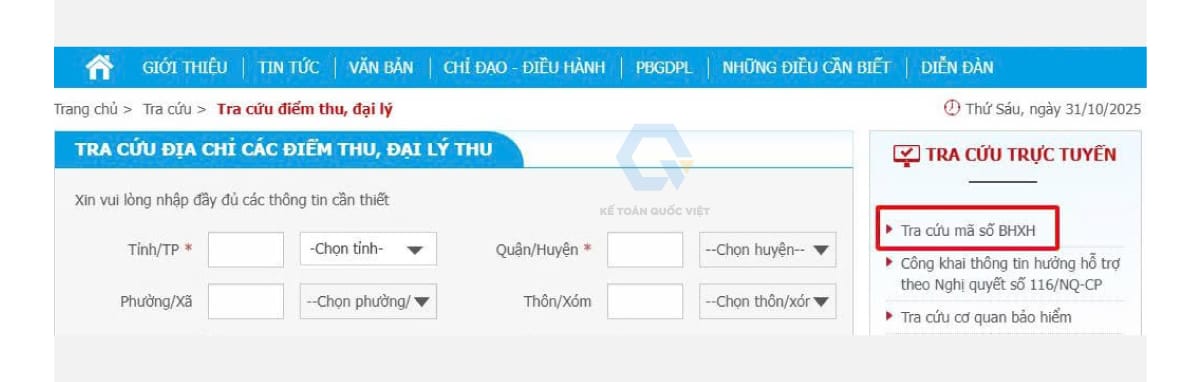 ➧ Bước 3: Tiếp tục chọn mục “Tra cứu mã số BHXH” và điền đầy đủ thông tin theo yêu cầu