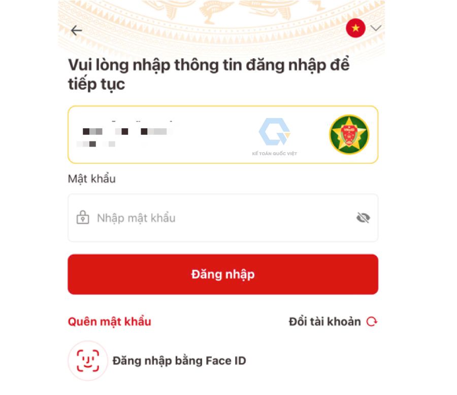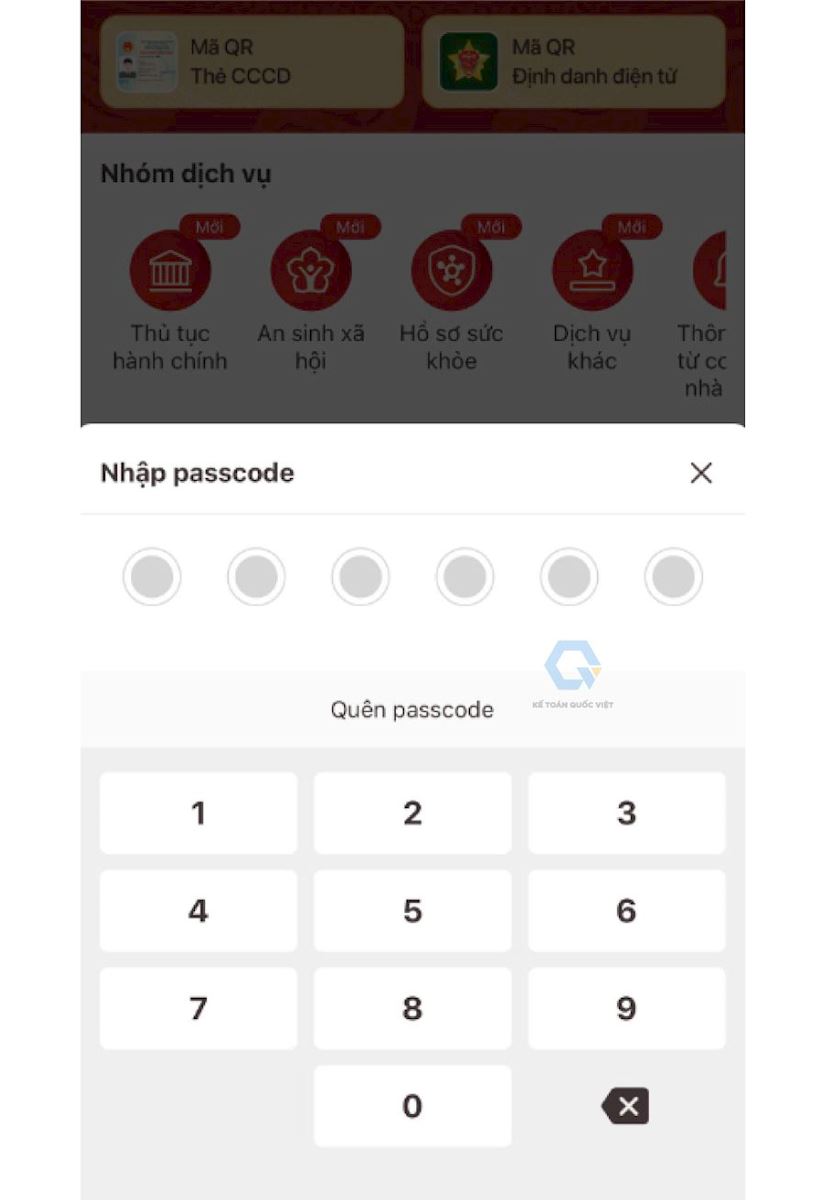 ➨ Bước 4: Nhập mật khẩu của tài khoản VNeID (gồm 6 chữ số)
