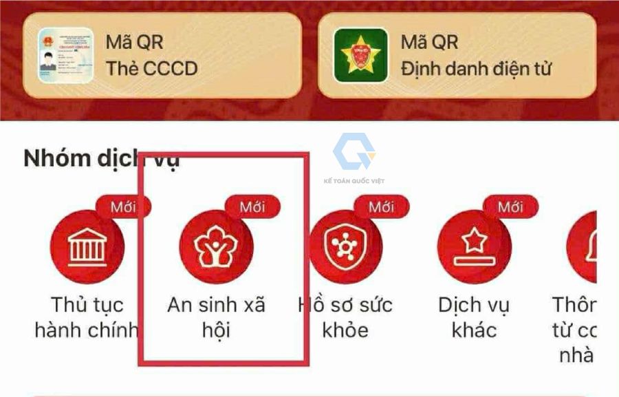 ➨ Bước 2: Tại thanh “Nhóm dịch vụ”, nhấn chọn mục “An sinh xã hội”