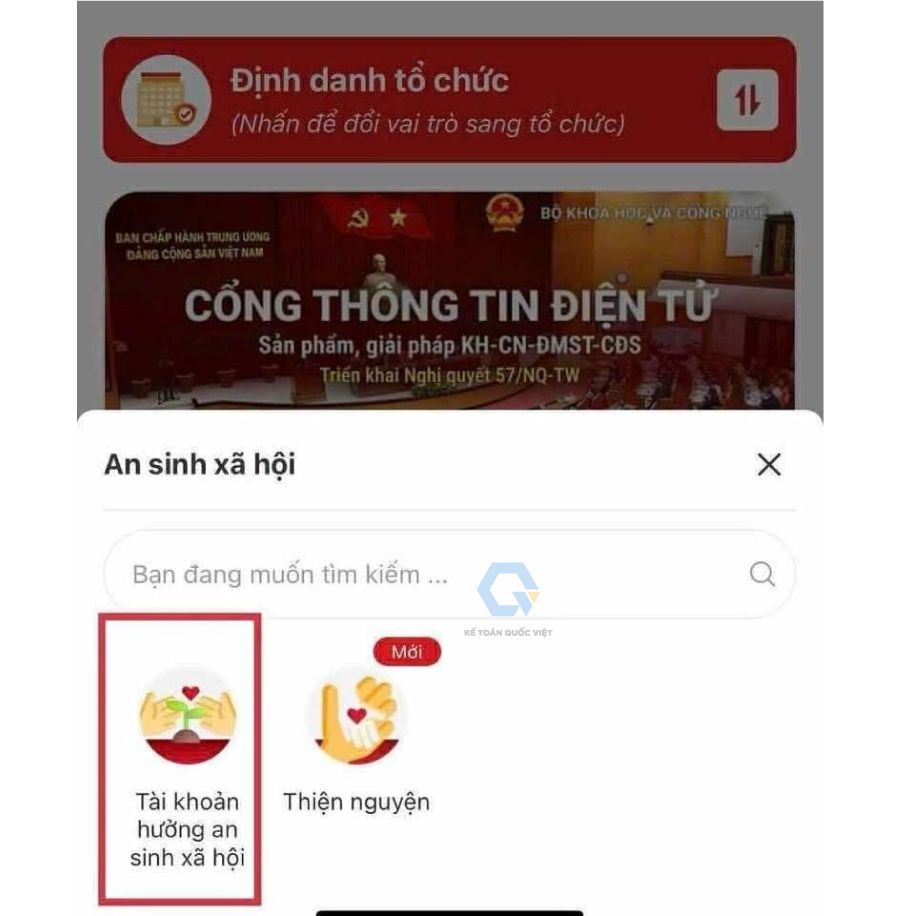 ➨ Bước 3: Tại giao diện “An sinh xã hội”, nhấn chọn mục “Tài khoản hưởng an sinh xã hội”